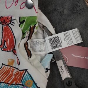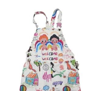 Shein Overalls Womens M Multicolor Kidcore Teacher Doodle All Over Print