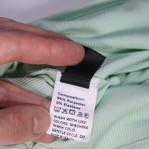 Shein Pastel Mint Vertical Ribbed Asymmetrical Neck Strappy Bodysuit, Large