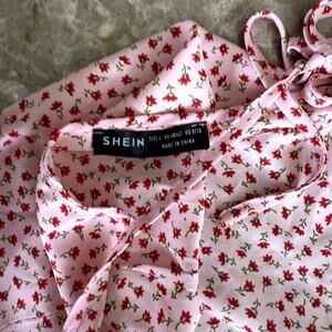 Shein Pink Floral Print Tie Strap Slip Sress- Large
