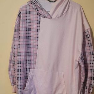 Shein pink plaid color block hoodie! pastel pink, black and white plaid detail. Functional kangaroo pocket! Lightweight with no stains!