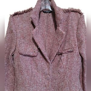 Shein Pink Tweed Fringe Jacket Sz Xsmall