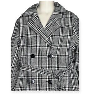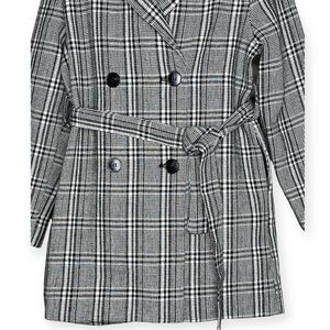 Shein Plaid Belted Double Breasted Coat Girls 9Y