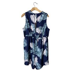 Shein Plus 1X Navy Blue Tropical Print V-Neck Romper Jumpsuit One Piece