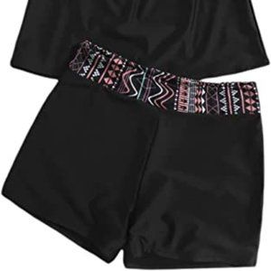 Shein Plus Size Geometric Print Ruched Tankini Top and Swim Shorts, size 3XL