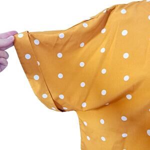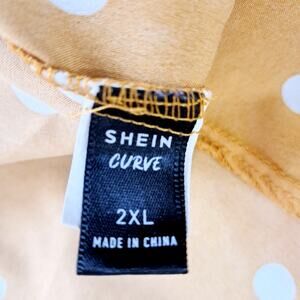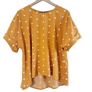Shein Curve polka dot top. Short cuffed sleeve. Hi-lo hem. Back button keyhole neckline.