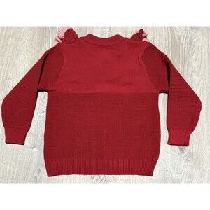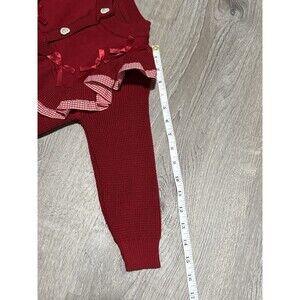 The Shein Red Ruffled Cardigan with Bows and Heart Shaped Buttons in size 18-24 months is a stylish and versatile sweater perfect for various occasions. Made of polyester knit fabric, this cardigan features a solid red color with a heart-themed design, making it ideal for parties, casual wear, or work. With long sleeves and a button closure, this sweater is both comfortable and easy to care for with machine washable instructions. Suitable for all seasons, this cardigan is a fashionable addition to any toddler's wardrobe, representing both style and practicality in one garment. Ships in one business day. Smoke free home.