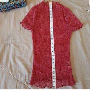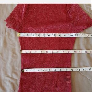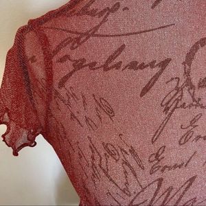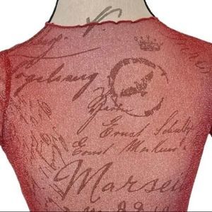 Shein Blouse Sheer Retro Size XS Ruffle Mock Neck Red Glitter Holiday Christmas