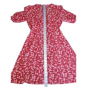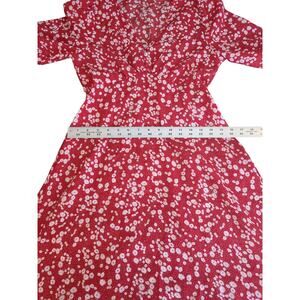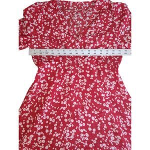 Shein Red & White Ditsy Floral V Neck Mini Short Sleeve Dress Size Small