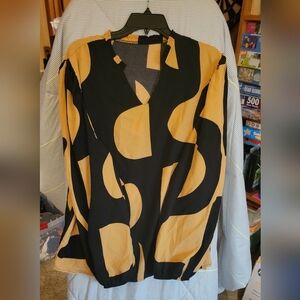 Shein Retro Yellow Black Ruffled Neckline 2XL Brand New