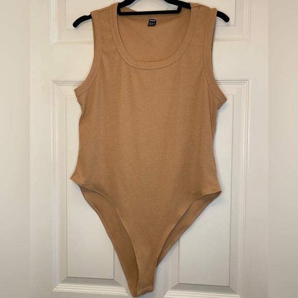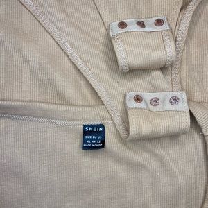 Ribbed Body Suit. Snap crotch. Scoop neck. Tan color. I ordered a bunch from Shein not realizing I couldn’t return. This is NWT, never worn but please note Shein does not have hanging tags just the pouch it comes in.