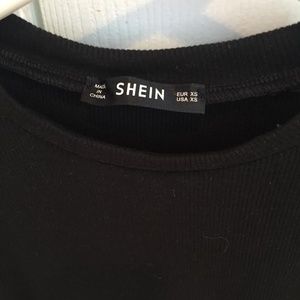 black, ribbed, puff sleeve, long sleeves, crew neck, light-weight.