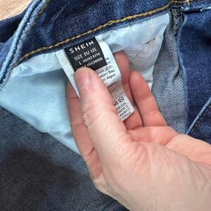 Shein Rock Baby Jeans Women’s L Blue Denim Smiley Face Patch Distressed Y2K