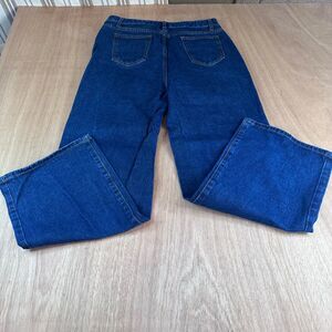 Trendy Shein “Rock Baby” jeans in size L (US 8/10, EU 40/42). These blue denim pants feature bold white “rock baby” lettering across the front and distressed yellow smiley face knee patches with frayed edges for an edgy Y2K vibe. Classic five-pocket design, zip fly with button closure, and straight leg cut. Great statement jeans for concerts, casual days, or streetwear looks.