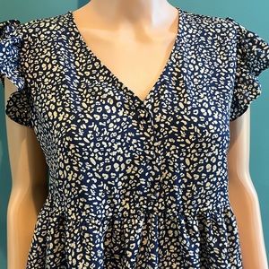 Shein ruffle blouse. Leopard print design. Button accents. Ruffle sleeves. No visible wear.
