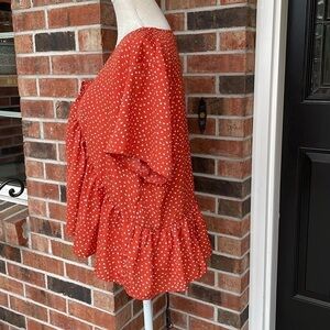 * V-Neck with short sleeves, slip over head, 2” longer in back