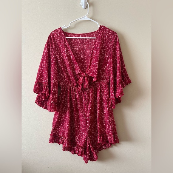 Shein Ruffled Keyhole Tie Romper