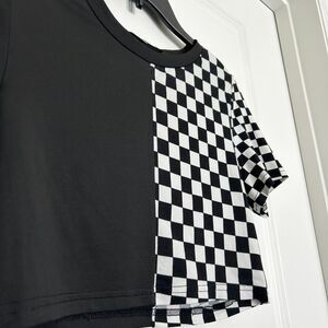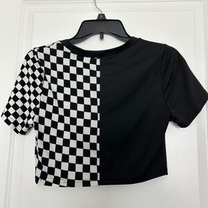 Shein (S) Black Checkered Print Crop Top Baby Tee