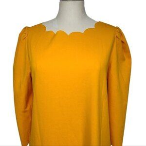 Shein dress, scalloped neckline trim, drawstrings to tie on back, mark on the sleeve, circled in picture, size M. Yellow.