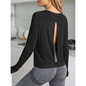 Shein Scoop Neck Open Back Long Sleeve Shirt Black Women’s Size M