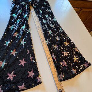 Shein Sequin Star Print Flared Pant Small Black Silver Rave Festival Maximalist