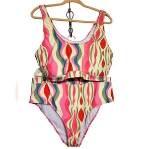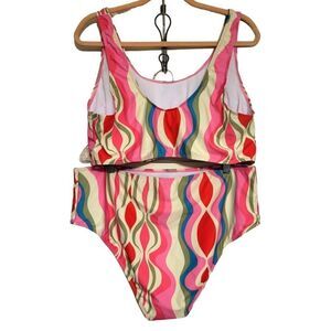 Shein Pink Wave Two Piece Swimsuit, Plus Size 3X New with tags