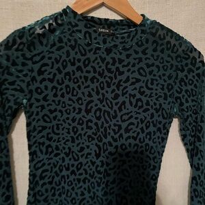 Shein Green and Black Sheer Leopard Long Sleeved Blouse
