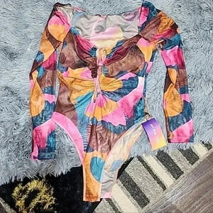 Shein Sheer colorful bodysuit. Nwt size small Super cute and stretchy Nwt. Never worn H-5