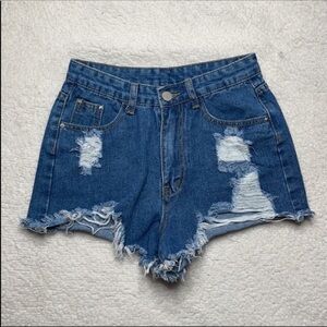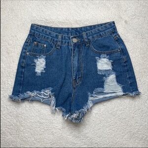 Shein Short Jeans Ripped Distressed High waist Sold Out Raw Hem Ripped