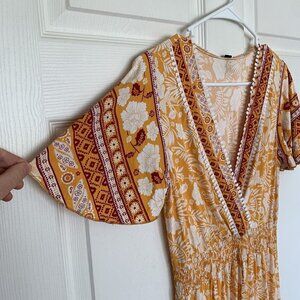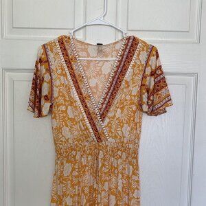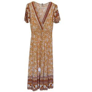 Shein Size Medium Yellow Floral Knot V Neck Maxi Dress Viscose