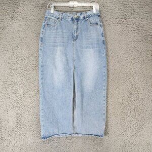 Shein Skirt Womens 6 Medium Wash Stretch Slit Straight Denim *Read*