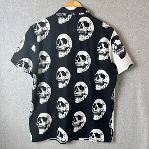 Shein Skull Button Down Shirt Mens Small Punk Gothic Halloween Skater Band Black