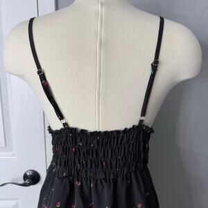 Shein Spaghetti Strap Romantic Casual Mini Dress With Rose Prints, Black/Red, L