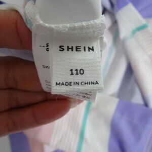 Shein Striped Dress Tie Belted Waist Girls Size 110 4-5 Yrs Purple Pink Keyhole