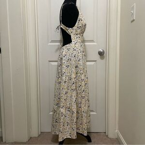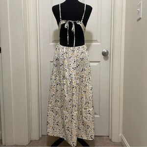 Shein Sun Dress Maxi Tiered Skirt Open Back Cream Ditsy Floral Print Medium