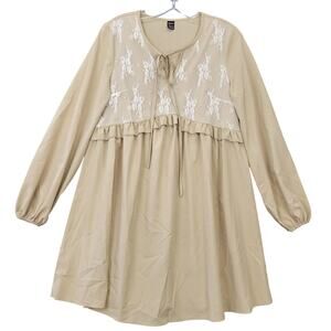 Shein Tan Mini Dress Stretch Shirtdress Lace Ruffles Long Sleeves Women's Size S