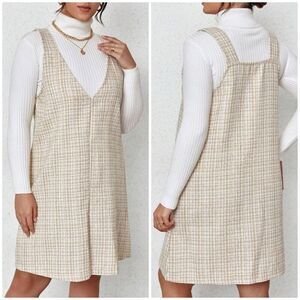 Shein Tan & White Plaid Tweed Sleeveless Mini Dress Size M