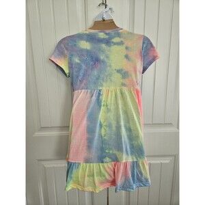 This Shein Tie Dye V Neck Skater Dress in size L is a brightly colored and stylish option for women. This knee-length dress features a V-neckline and short sleeves, perfect for casual or travel occasions. Made from jersey fabric with stretch, this A-line dress offers a comfortable and trendy look for everyday wear. The multicolor tie-dye pattern adds a fun and vibrant touch to the overall colorful theme of the dress.