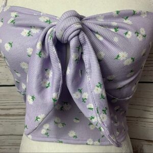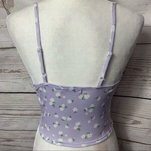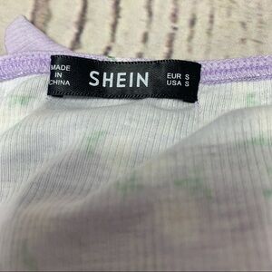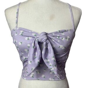 Shein Tie Front Ribbed Ditsy Floral Crop Tank Top