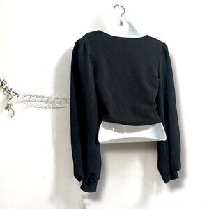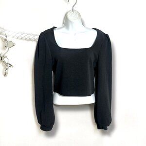 Chic black top, long sleeve with just enough puff on shoulder, perfect with a pair of blue jeans