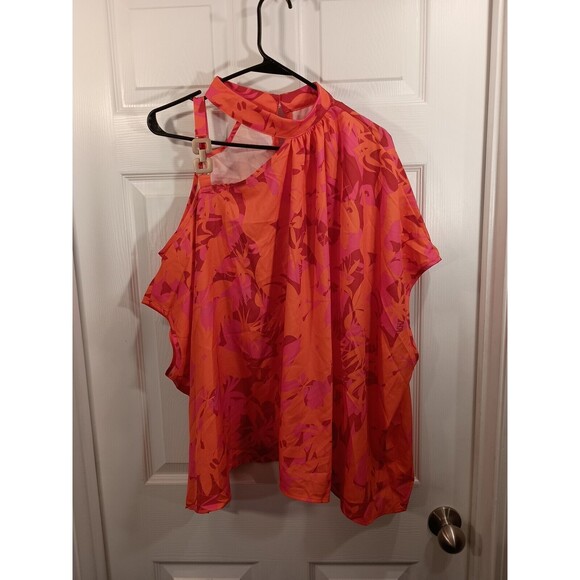 Shein Top Size L Pink And Orange *Looks Big See Measurements. Condition is Pre-owned.