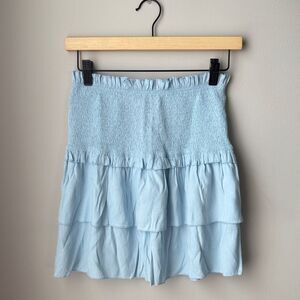 Shein Ultra Soft High Waisted Stretchy Flowy Light Blue Shirred Tiered Skirt