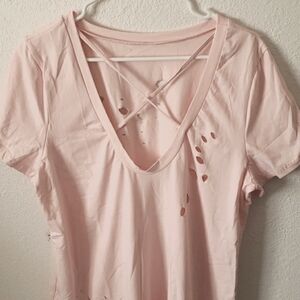 Shein V-Neckline Peachy Pink Criss Cross Ripped Curved Hem Tee Size XXL