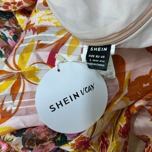 Shein Vcay Floral Print One Shoulder Jumpsuit Size L 8-10 NWT