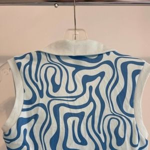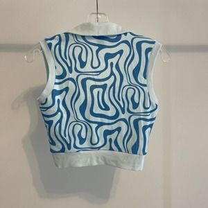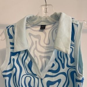 Shein V-neck crop top two-tone blue with collar preowned‎ size 2