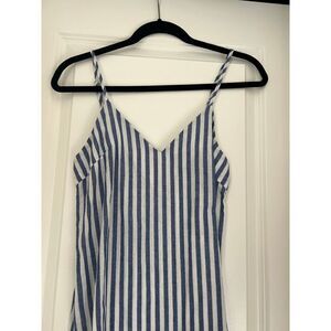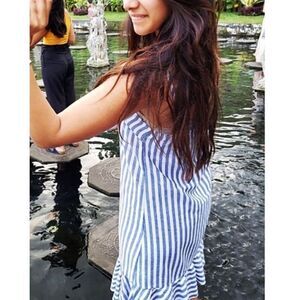 Shein V-neck vertical blue stripe strapless drop ruffle hem dress size XS
