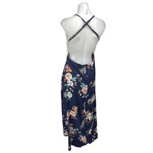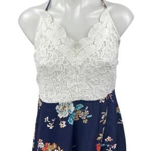 Shein White Blue Floral Crochet Knit Sleeveless Cross Back A Line Maxi Dress XL