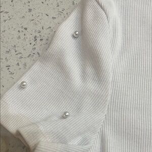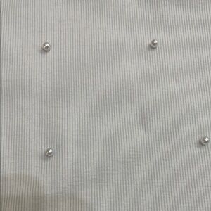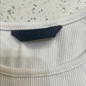 This chic white t-shirt from SHEIN features a stylish crop design with short sleeves, perfect for a trendy and casual look. The top is embellished, adding a touch of flair to its minimalist style. Ideal for pairing with high-waisted jeans or skirts for a fashionable ensemble.
