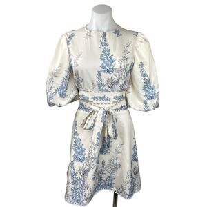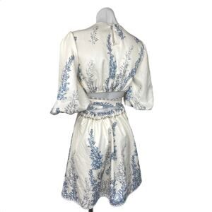 Shein White Plants Print Cut Out Tie Back Lantern Sleeve Boho A Line Dress Sz S