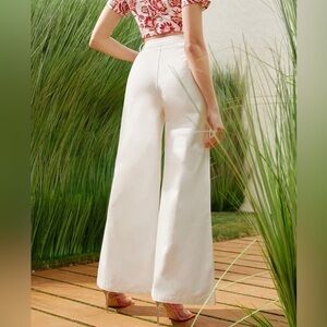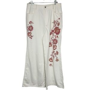 Shein White Wide Leg Orange Floral Embellished High Rise Pants, XL