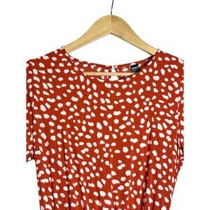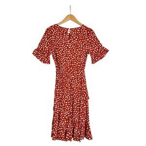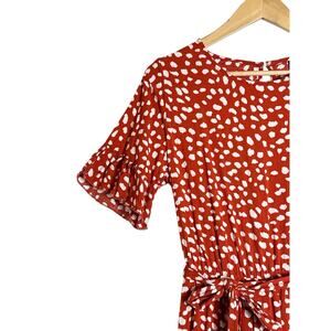 • Add playful charm to your wardrobe with this flirty and feminine red polka dot dress from SHEIN. Featuring a soft cream abstract dot print on a rich orange base, this dress offers a flattering silhouette perfect for brunch dates, parties, or casual outings.